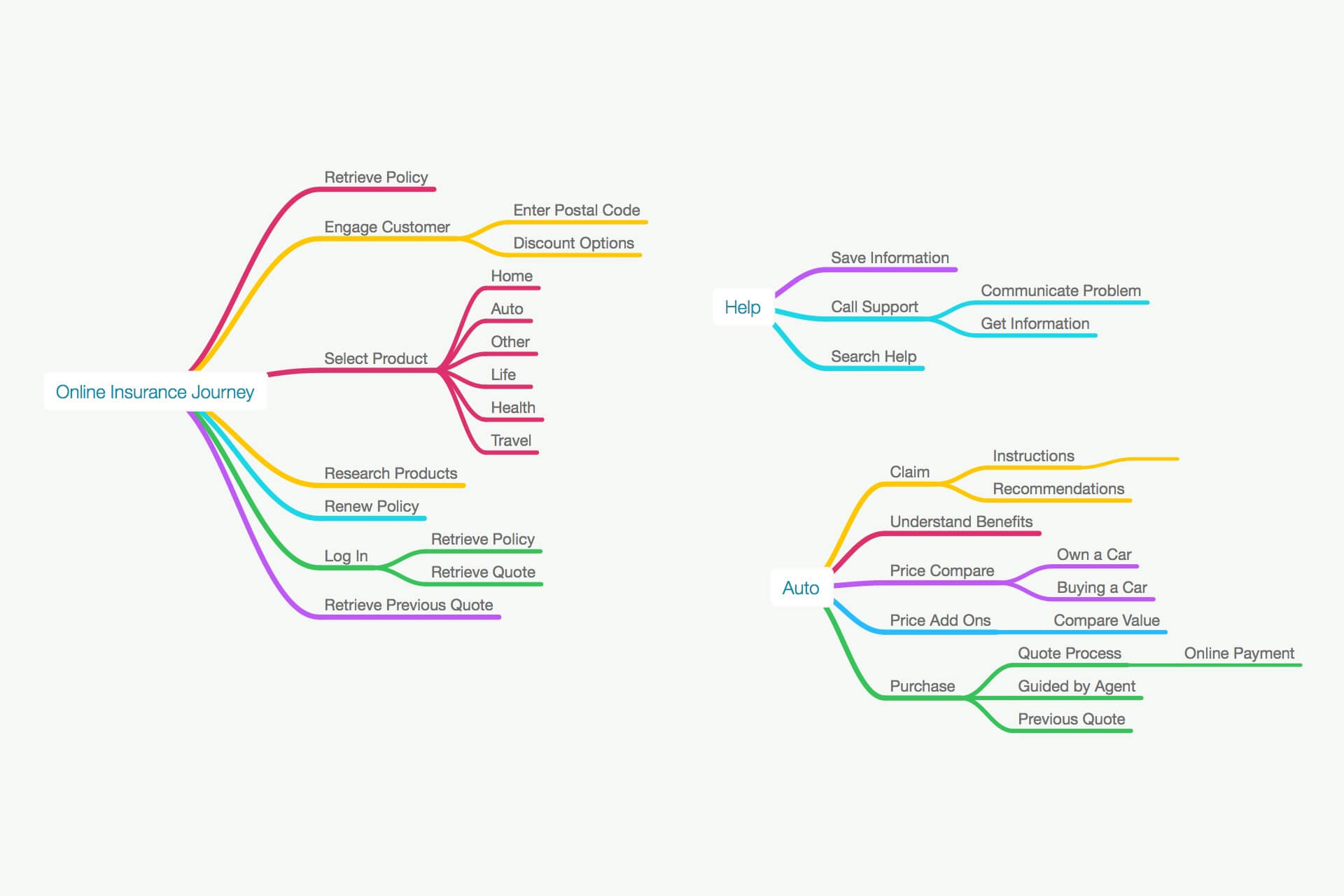 The discussion was beneficial, and we created an action plan. We understood more about the requirements and technical hurdles. Furthermore, the main user flows were mapped to grasp the scope of this project. To begin with, we decided to work on two processes, auto claim, and life quote, with one process for each designer.